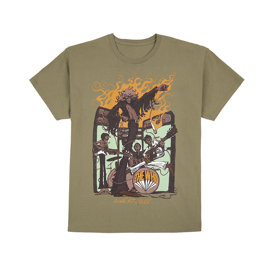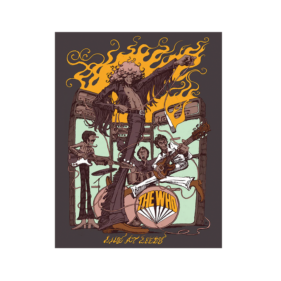 ABOUT THE DESIGN : The 60s and 70s were a mythical time for rock music and live concerts, and when you think about the Who, you think about the stories of thunderous and powerful live shows with crushing guitar riffs and walls of amps, and a frantic group of amazing musicians. I wanted to show the unpredictable energy of the band and the personalities of each member. With a flaming wall of amps as a backdrop to seal the deal!